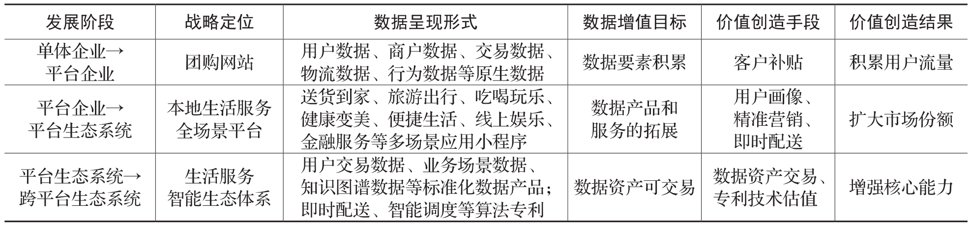 表1 美团数据要素赋能企业价值创造的演化逻辑