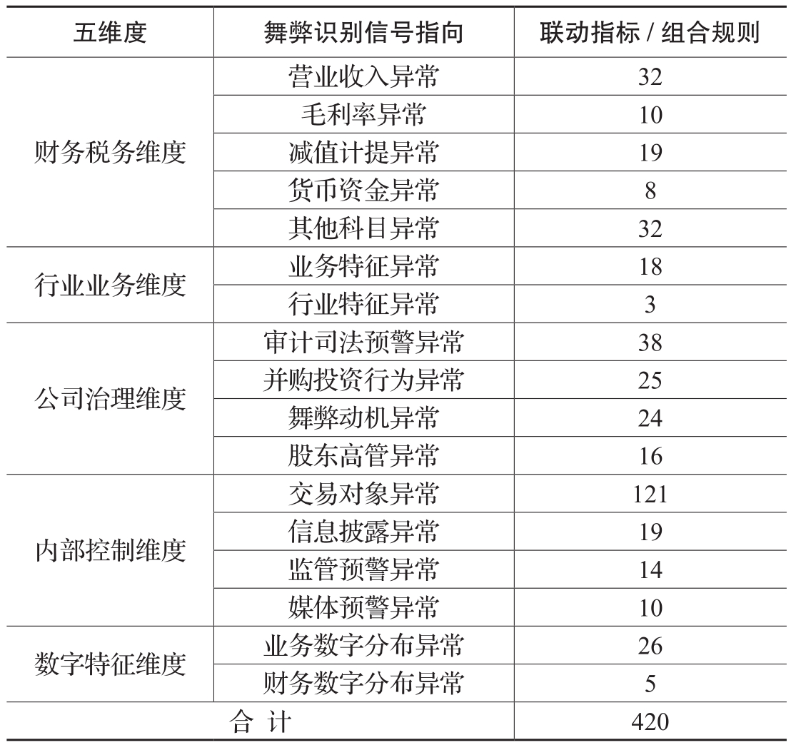 表1 五维度识别模型指标规则体系