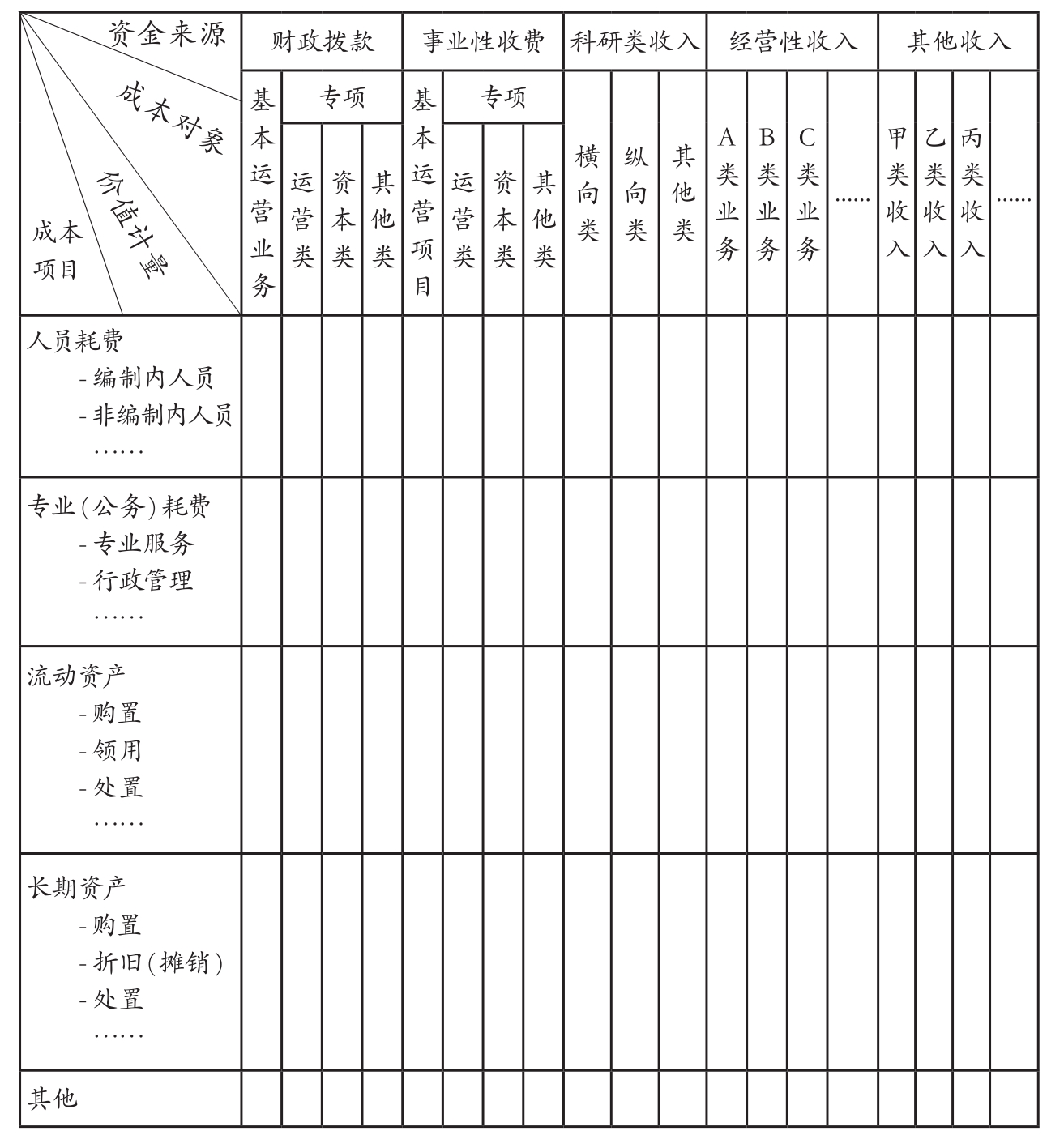 政府成本对象的设置应根据成本目标的不同呈现出多维度、多层次的特征,并进一步依据核算主体对成本信息的具体需求分别进行归集和分配(赵西卜等,2021)。公益性事业单位作为政府会计主体的组成部分,承担着多元化提供公共产品和服务的责任。一则无论其归属哪一个行业,任何单个的公益性事业单位承担的社会职能都具有多元化的特征,如公立医院和高校除了提供的专业性服务以外还承担着引领社会价值观、创新科学研究、服务社会实践、服务产业行业价值链等职能。二则公益性事业单位基于专业服务核心承担着政府专项性购买服务、与市场组织合作、与公益性组织联合提供服务等职能,这些职能决定了其内在的业务划分和职能部门划分的多样性和灵活性,加上公益性事业单位资金来源与使用的限制性(专款专用)原则,共同决定了其成本计算对象划分的多样性。然而,从目前公益性事业单位成本核算的实践来看,成本计算对象或按照部门设置或按照业务类型设置,成本核算的主要目标在于满足绩效评价和成本控制,成本信息系统和预算管理系统互不关联,一方面零基预算编制需要预估各类业务事项的成本,另一方面成本计算对象不是按照预算编制的业务事项进行分类设置,实际成本的核算与预估成本的依据相互脱节,亟需变革。