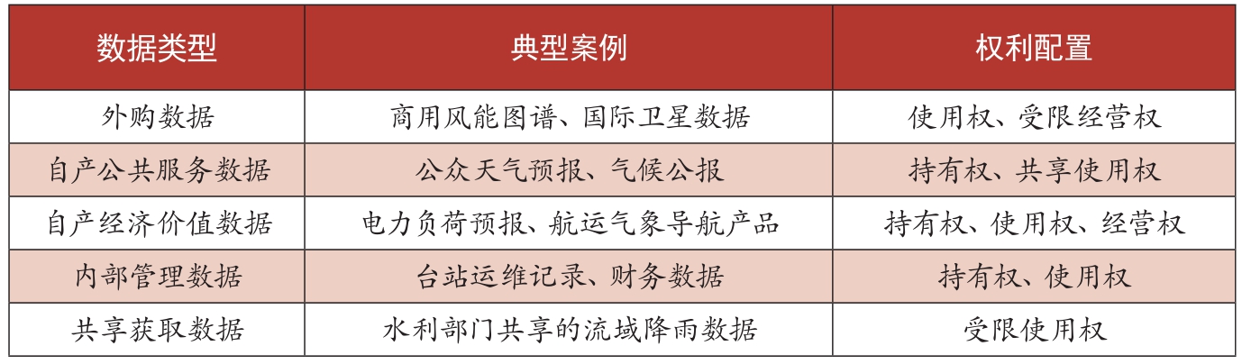 1.权属复杂性。气象数据范围较为广泛,覆盖领域不仅涉及民生,还涉及军事国防,观测范围不仅涵盖全国,还覆盖全球其他地域;气象观测数据收集主体多元化,我国形成了以中国气象局为气象数据收集主体、各相关部门收集有关数据并相互补充的气象数据收集体系,收集主体不统一;气象数据使用范围不同,大部分气象数据可民用,但部分区域的气象数据还涉及国土安全、军事安全及能源安全等敏感领域,无法公开使用。