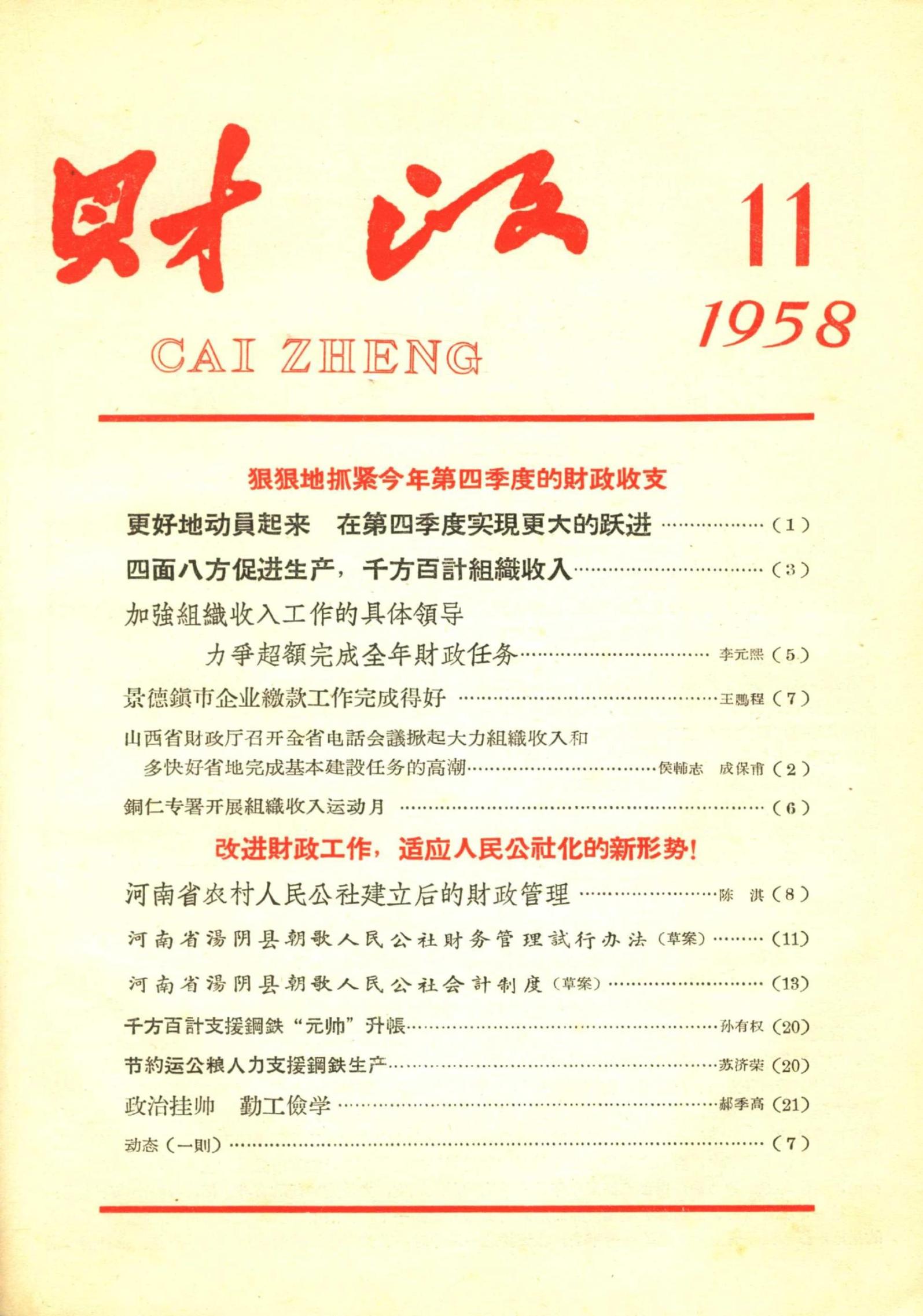 11 | 河南省湯阴县朝歌人民公社財务管理試行办法(草案) | |