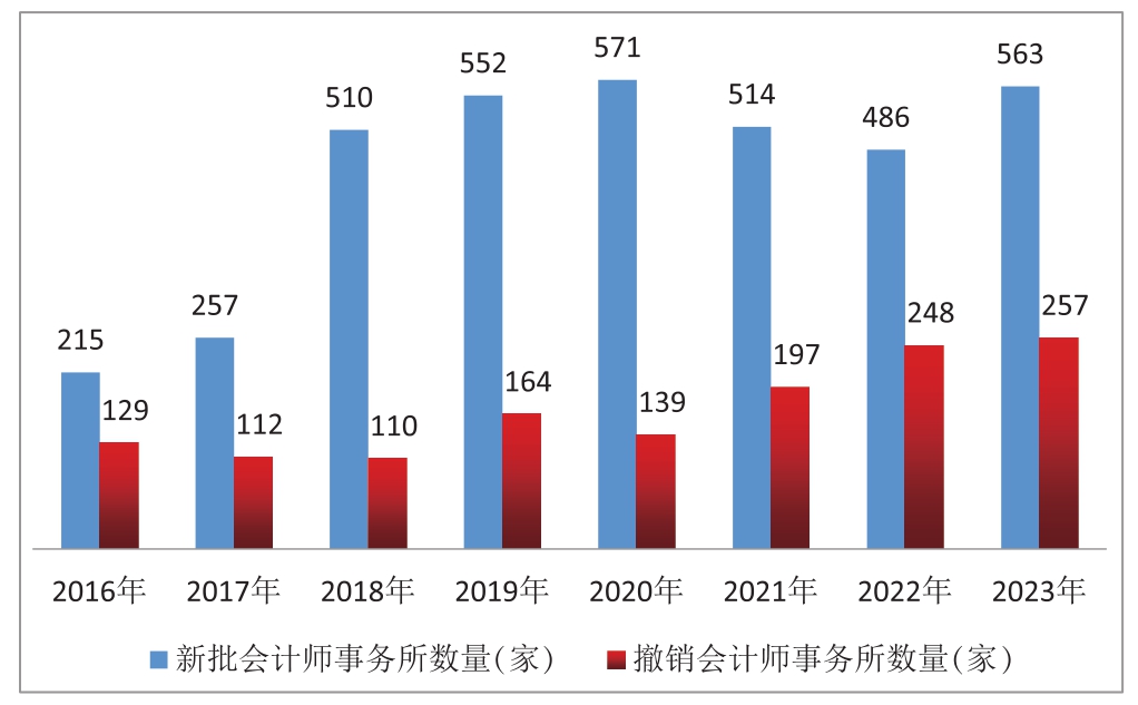 图3 2016—2023年会计师事务所新批与撤销情况