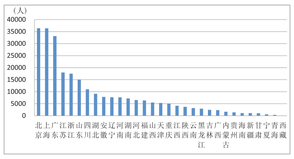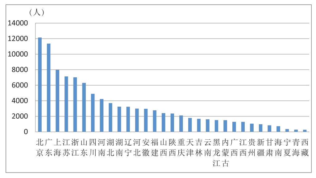 (一)注册会计师数量。截至2023年12月31日,全国共有注册会计师102017人,比上年增加3918人。其中:北京注册会计师数量最多,为12151人,占注册会计师总数的11.91%;广东和上海位列省级行政区域排名第2位、第3位,注册会计师数量分别为11364人(含深圳4555人)和7975人;江苏、浙江、山东、四川、河南、湖北、湖南分别位列第4—10位。排名前10位省级行政区域内的注册会计师共68014人,占注册会计师总数的66.67%(具体情况见图4,数据见附表)。