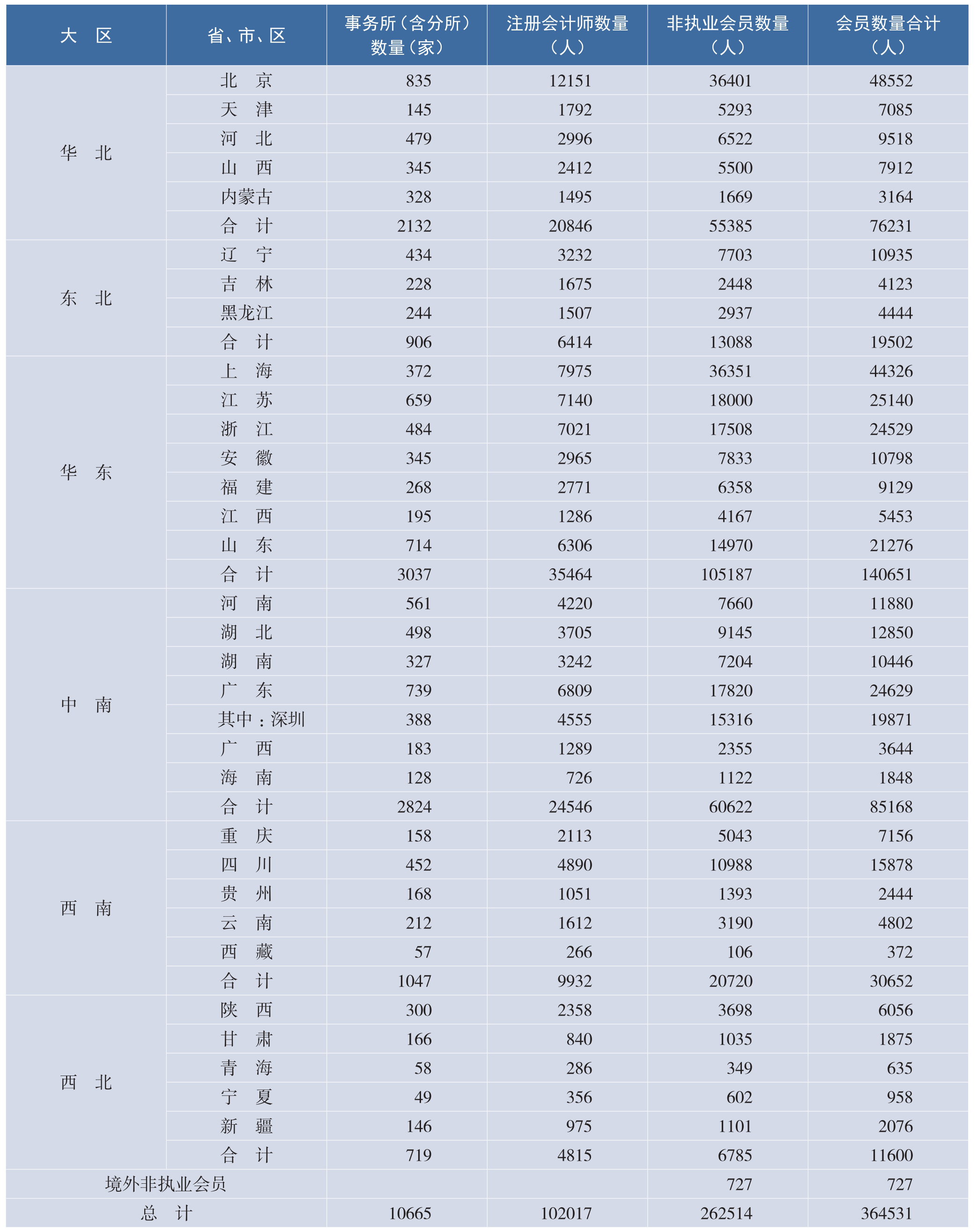附表:会计师事务所、注册会计师和非执业会员地区分布情况
