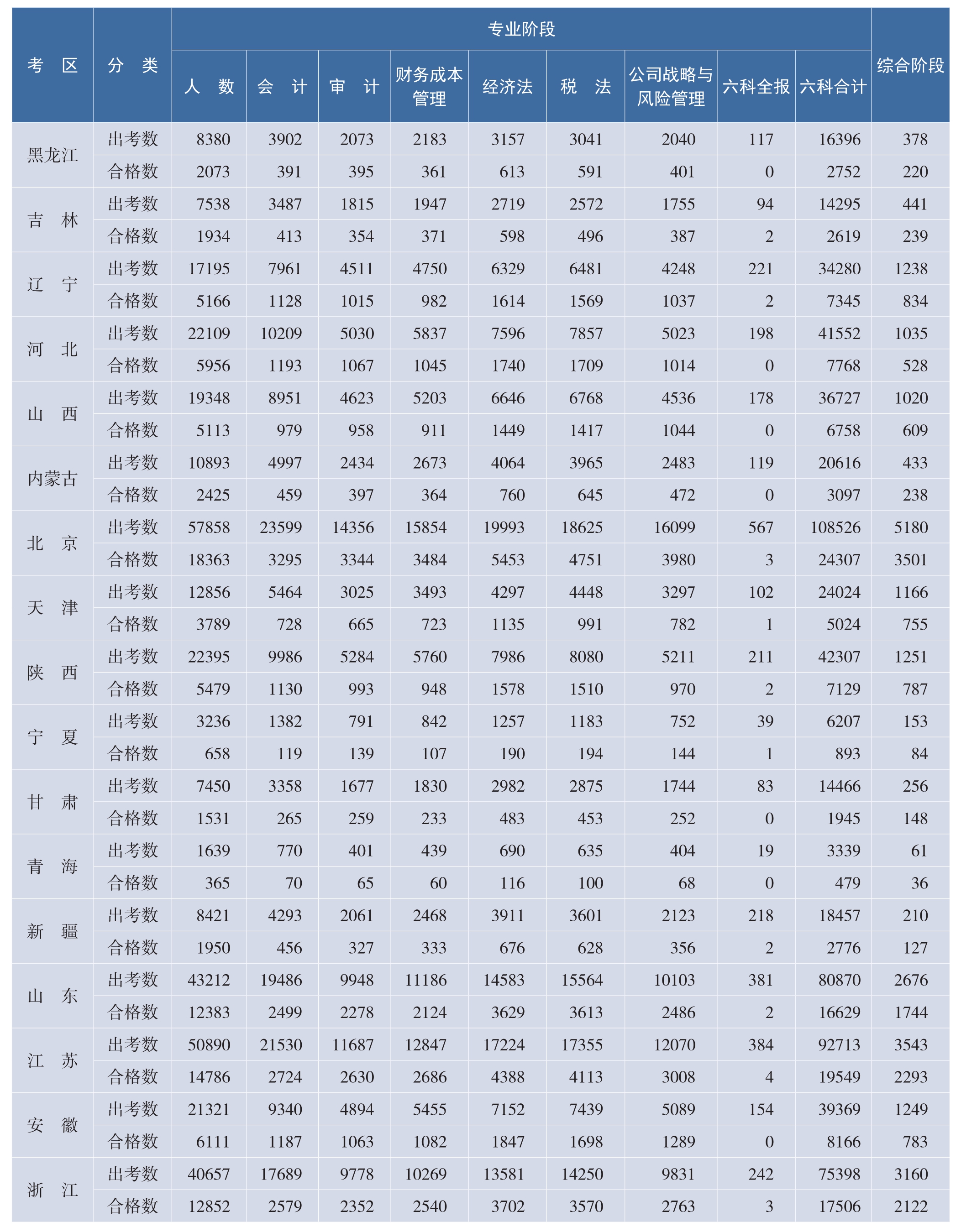 2023年注册会计师全国统一考试出考、合格人数统计表