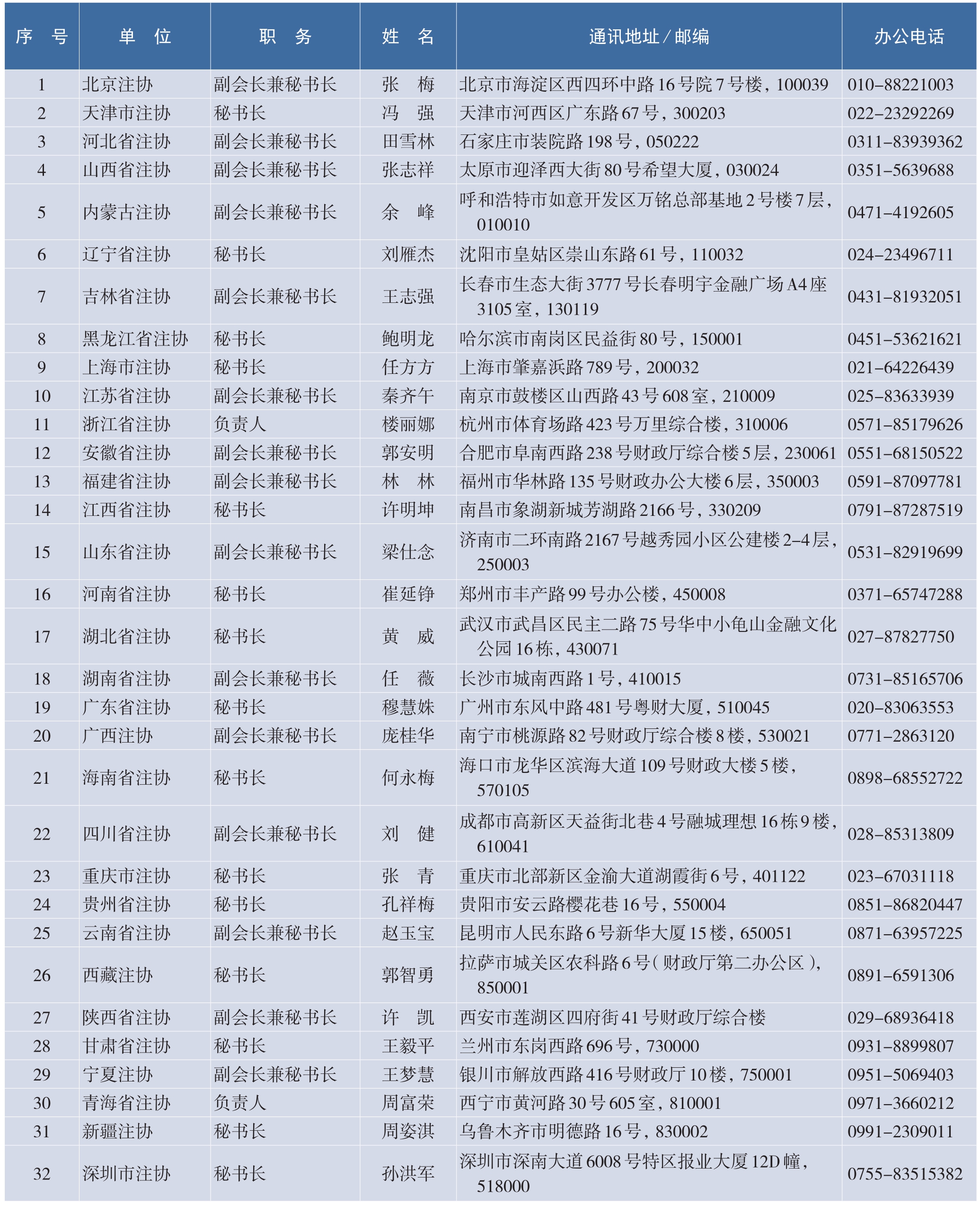全国省级注册会计师协会负责人名录