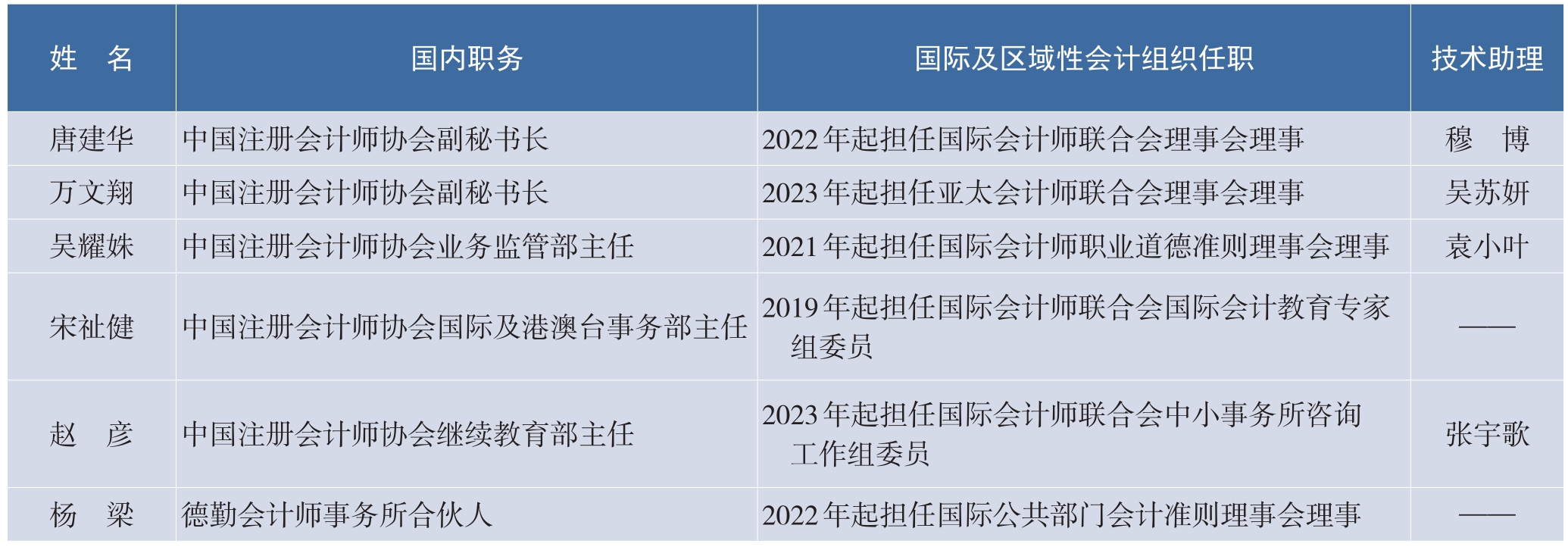 在国际和区域性会计职业组织任职的行业代表名录