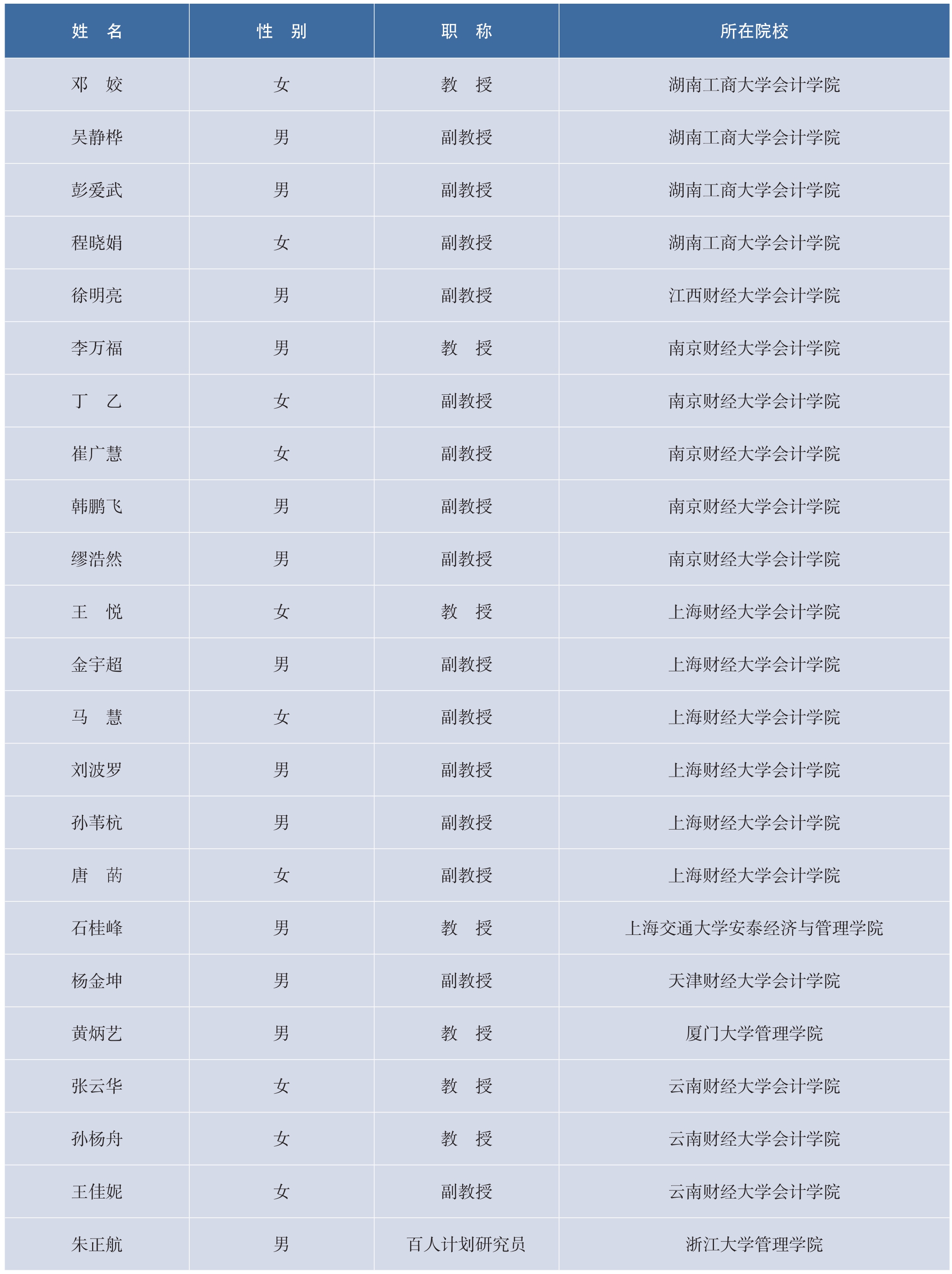 2023年新增会计学教授、副教授名录