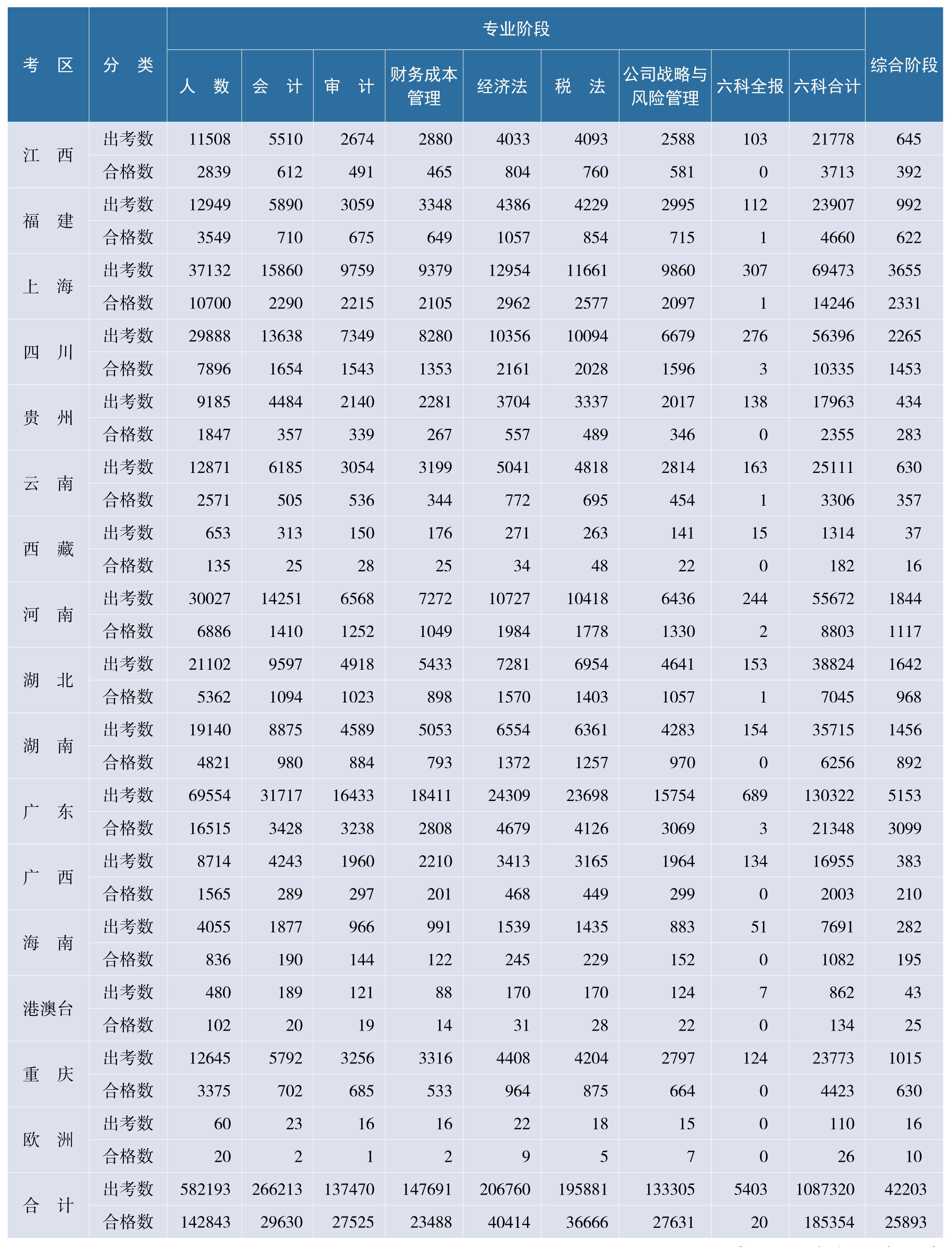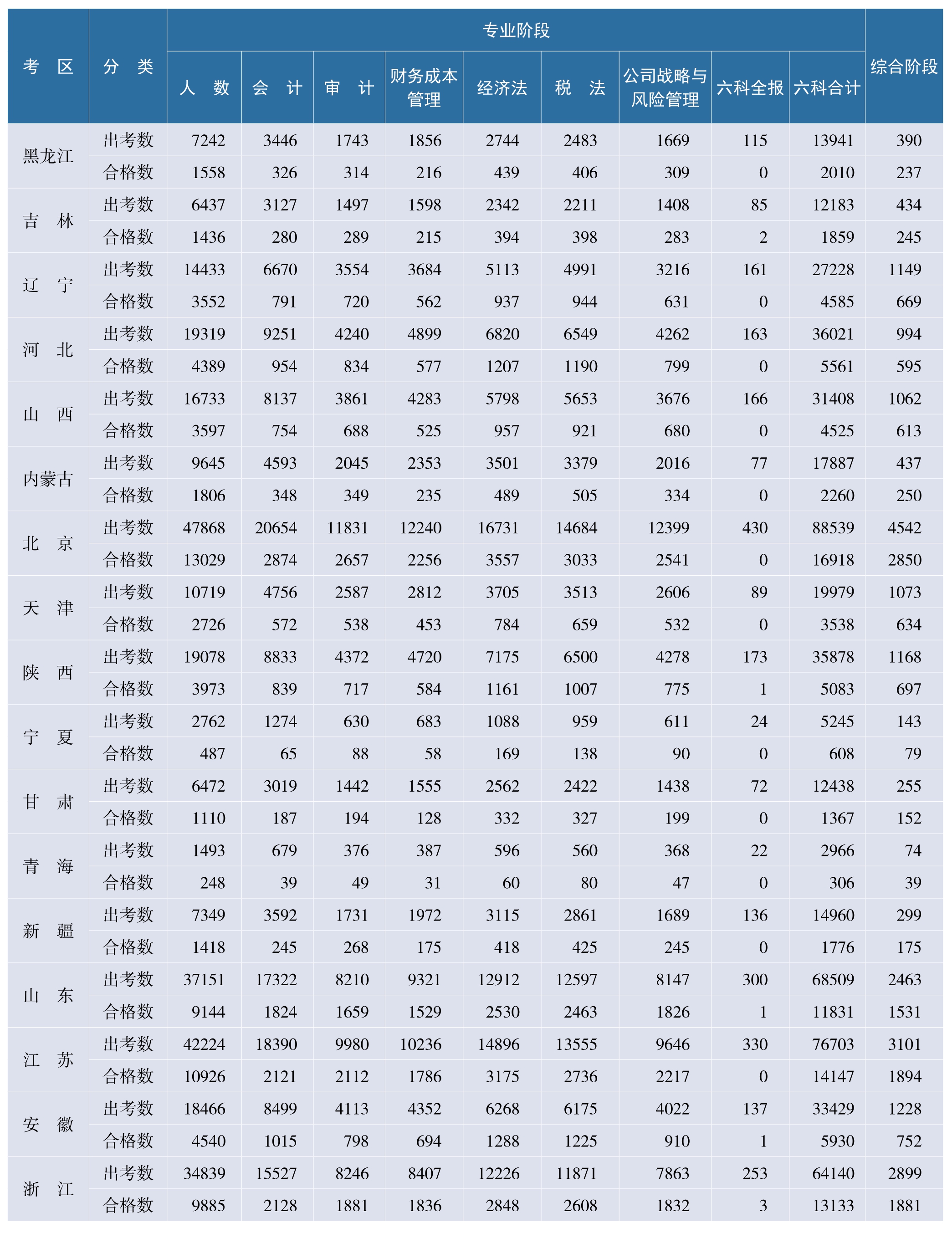 2024年注册会计师全国统一考试出考、合格人数统计表