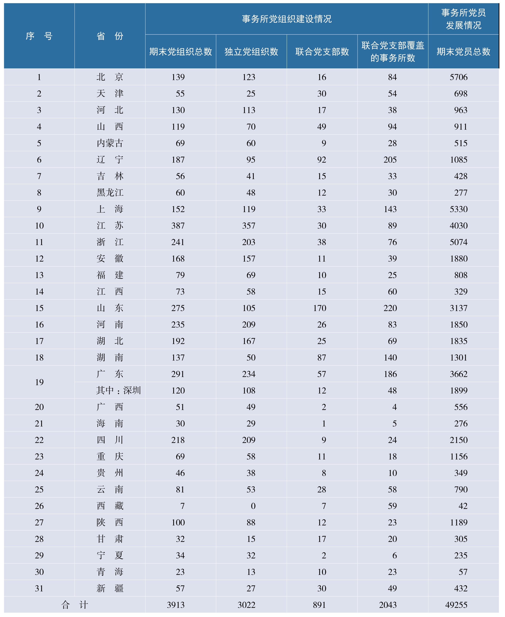 2024年各省(自治区、直辖市)会计师事务所党组织和党员数量统计表