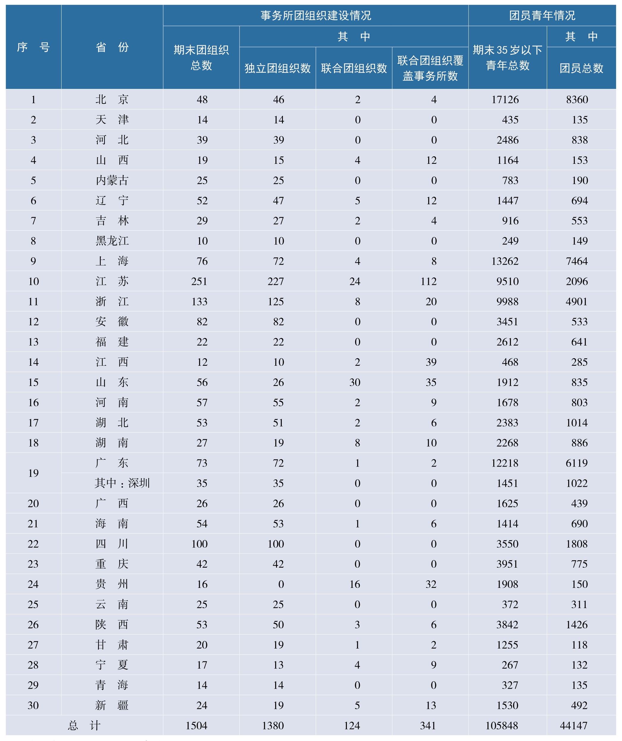 2024年注册会计师行业共青团建设情况统计表