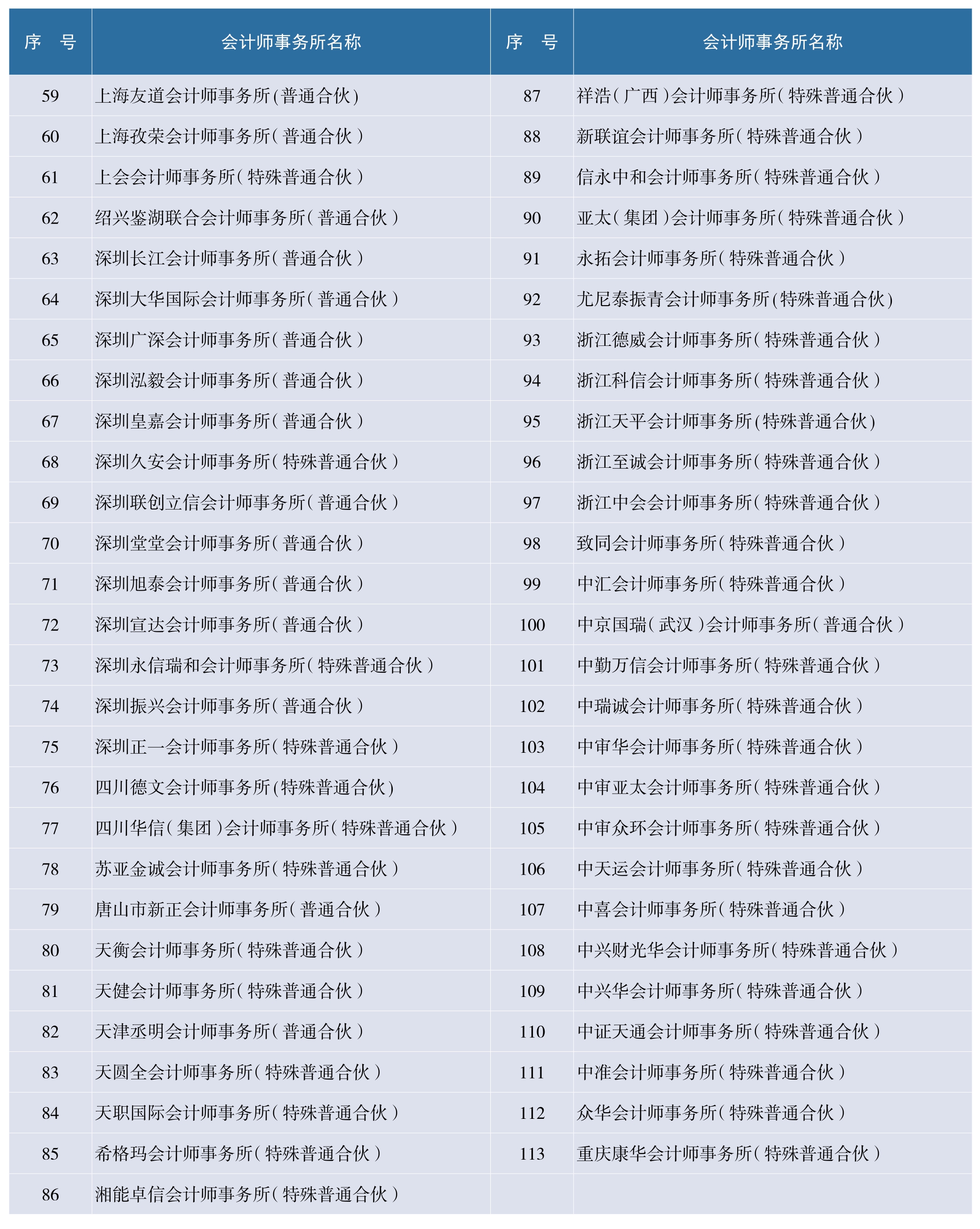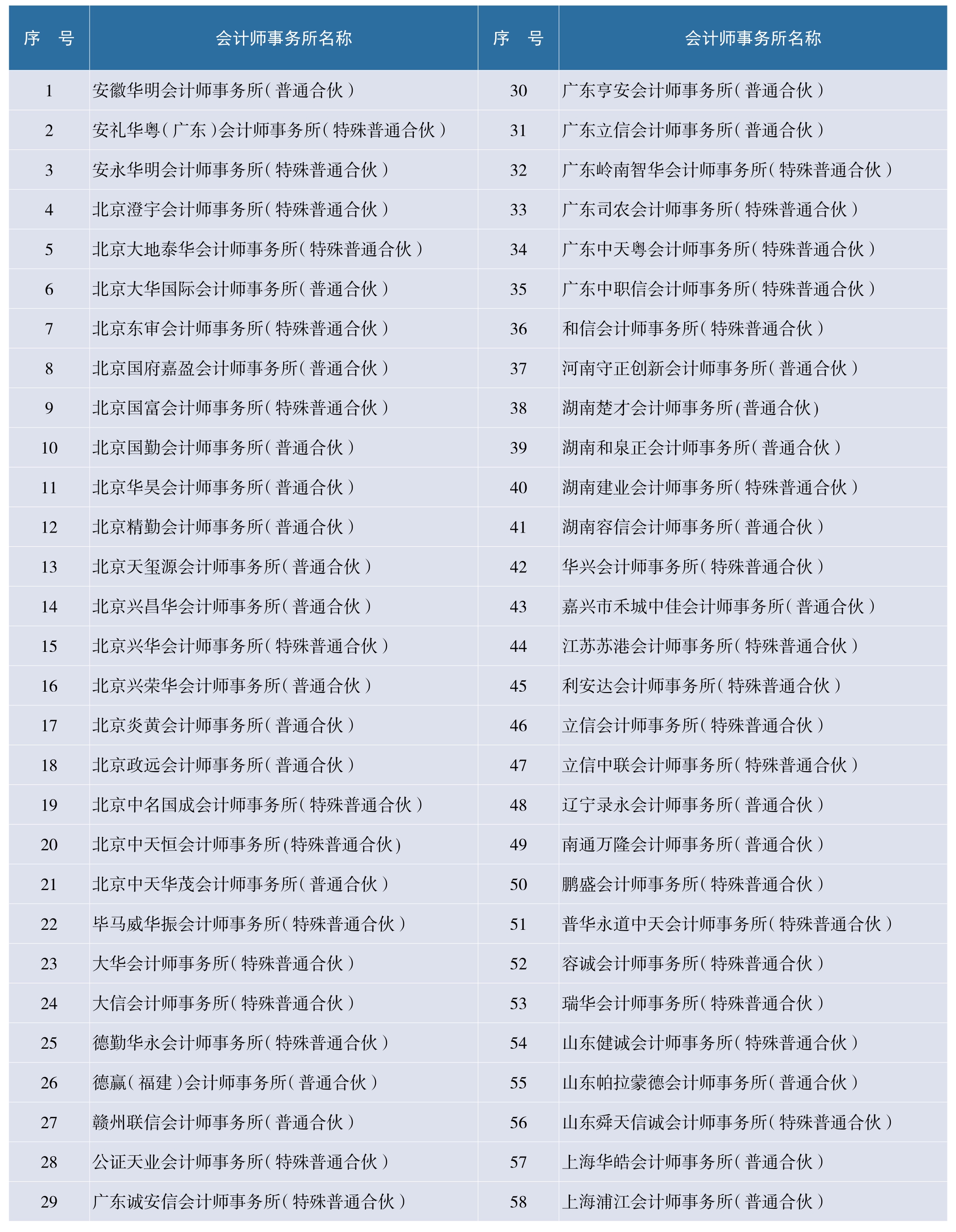 注:广东正中珠江会计师事务所(特殊普通合伙)、广州粤达会计师事务所(普通合伙)、深圳中炘国际会计师事务所(普通合伙)已终止,未在名录中显示
