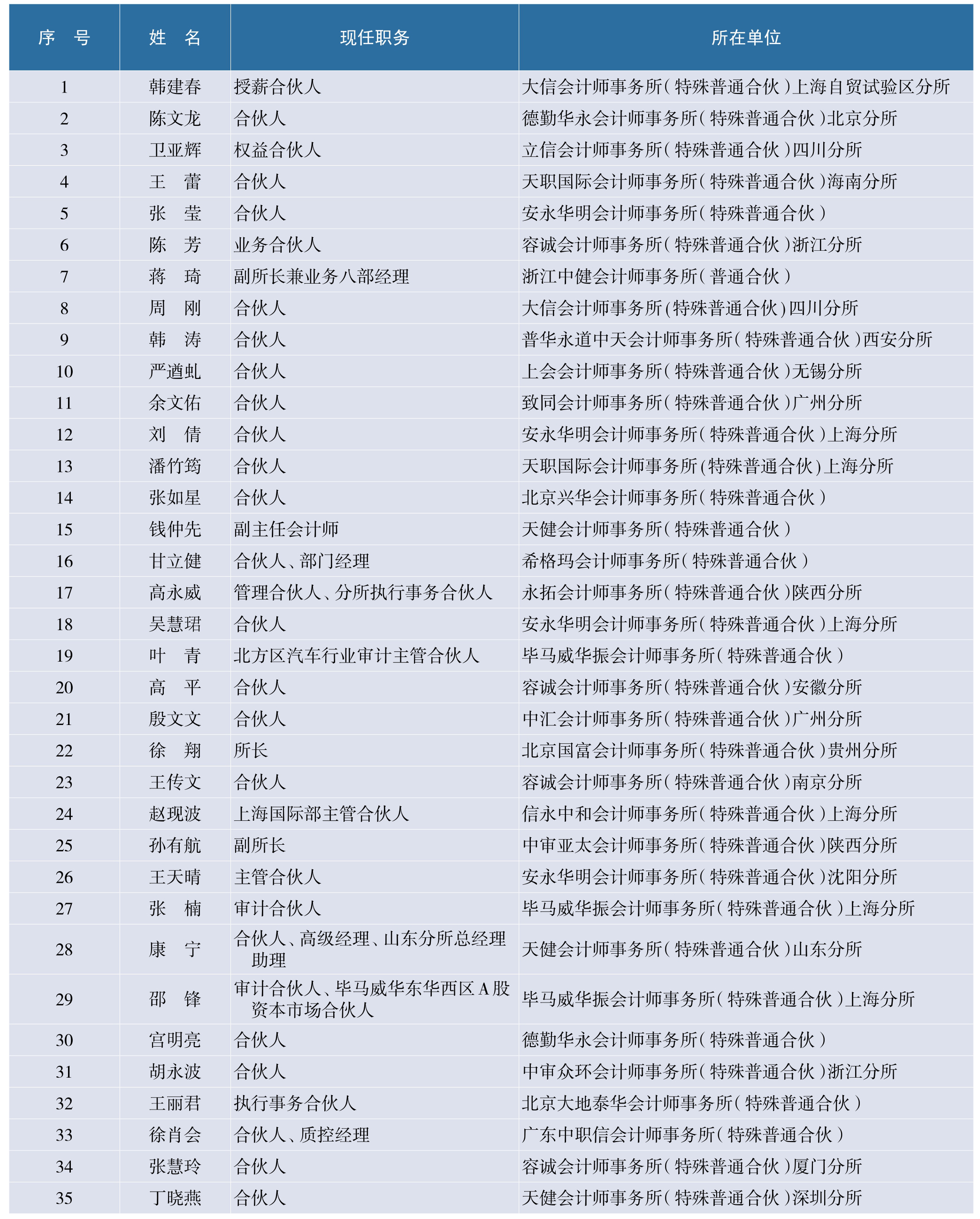 财政部高层次财会人才素质提升工程(中青年人才培养——注册会计师班)第五期学员名录