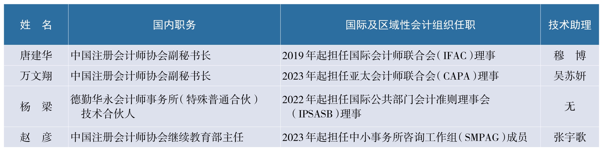在国际和区域性会计职业组织任职的行业代表名录