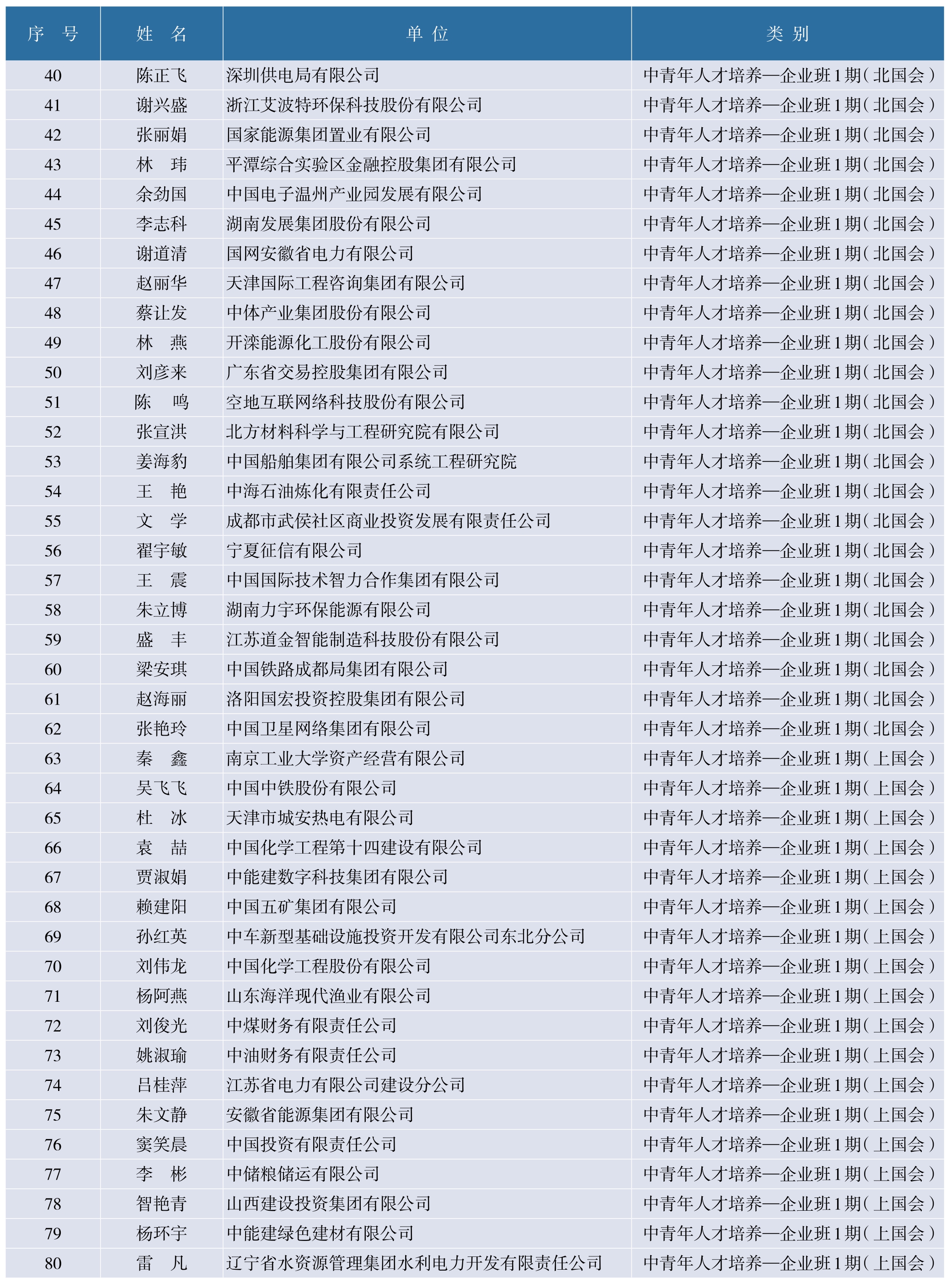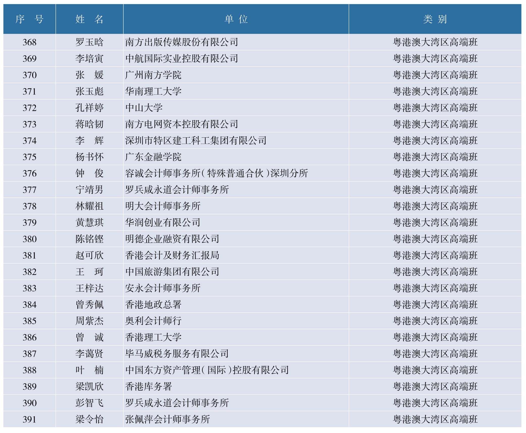 财政部高层次财会人才素质提升工程(长期班)学员名录