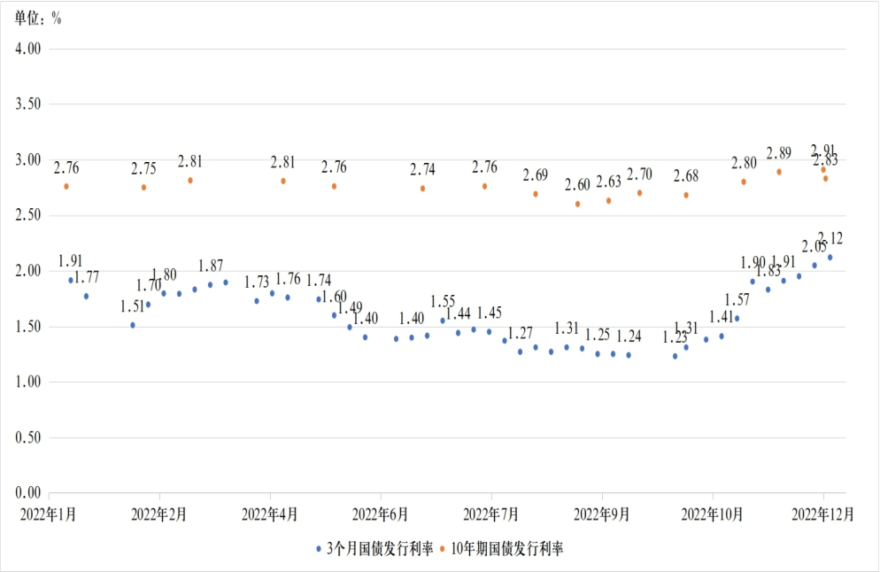 图6:2022年3个月、10年期国债发行利率