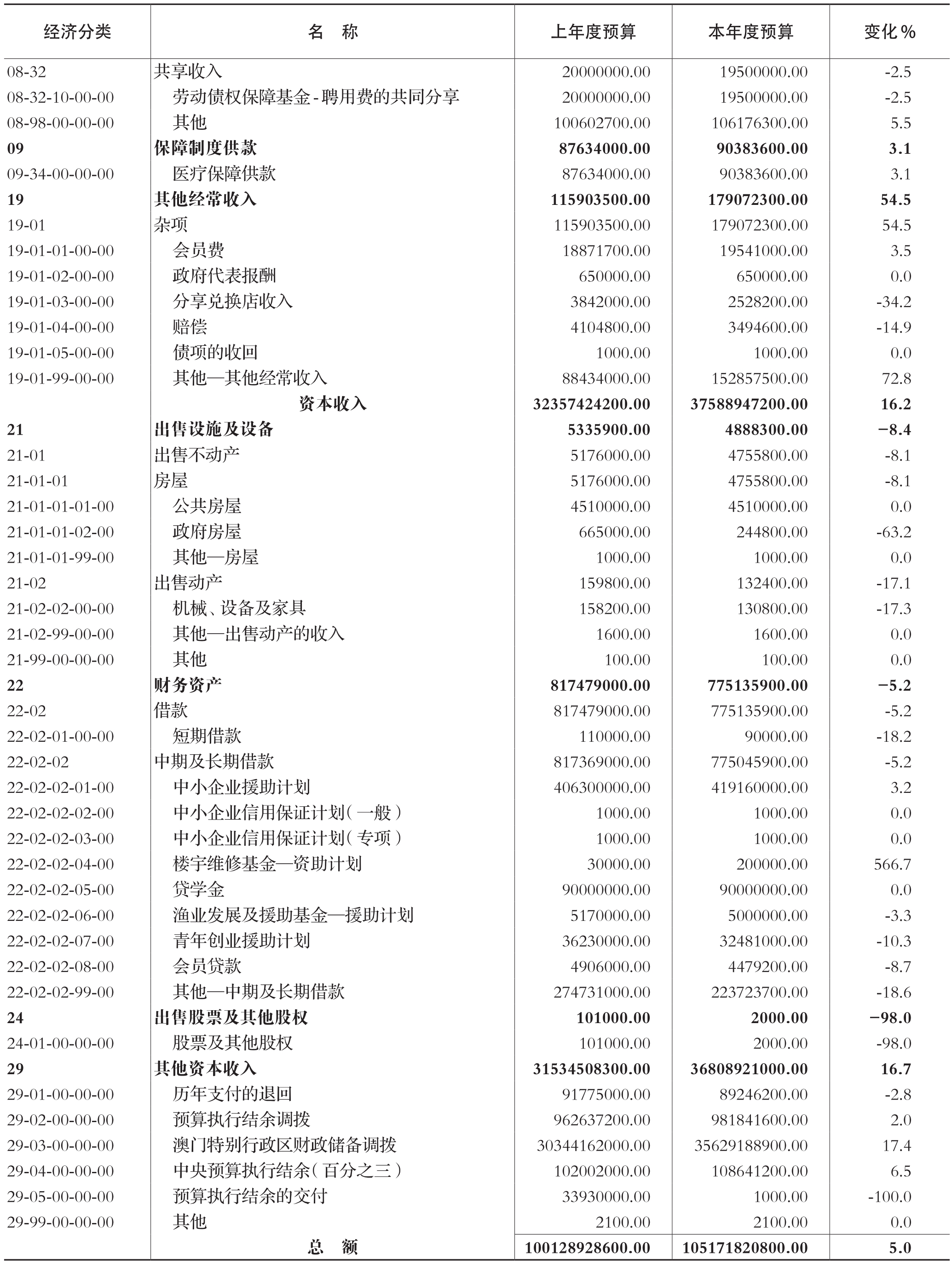 二、上款所指澳门特别行政区财政预算的预算表载于作为本法律组成部分的附件一及附件二,包括下列部分: