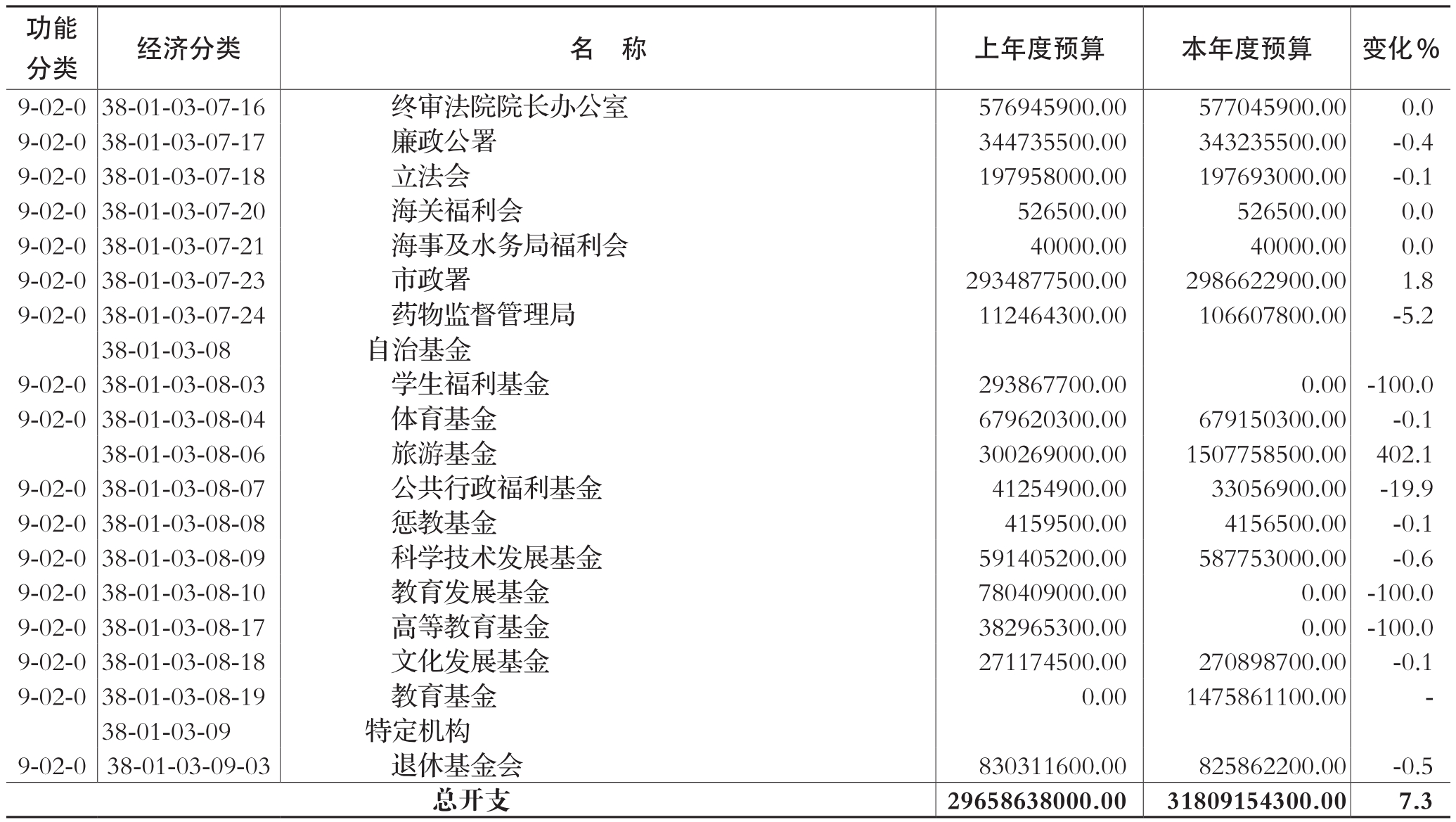 (一)澳门特别行政区一般综合预算,包括中央预算和除特定机构外的自治部门及机构的本身预算;