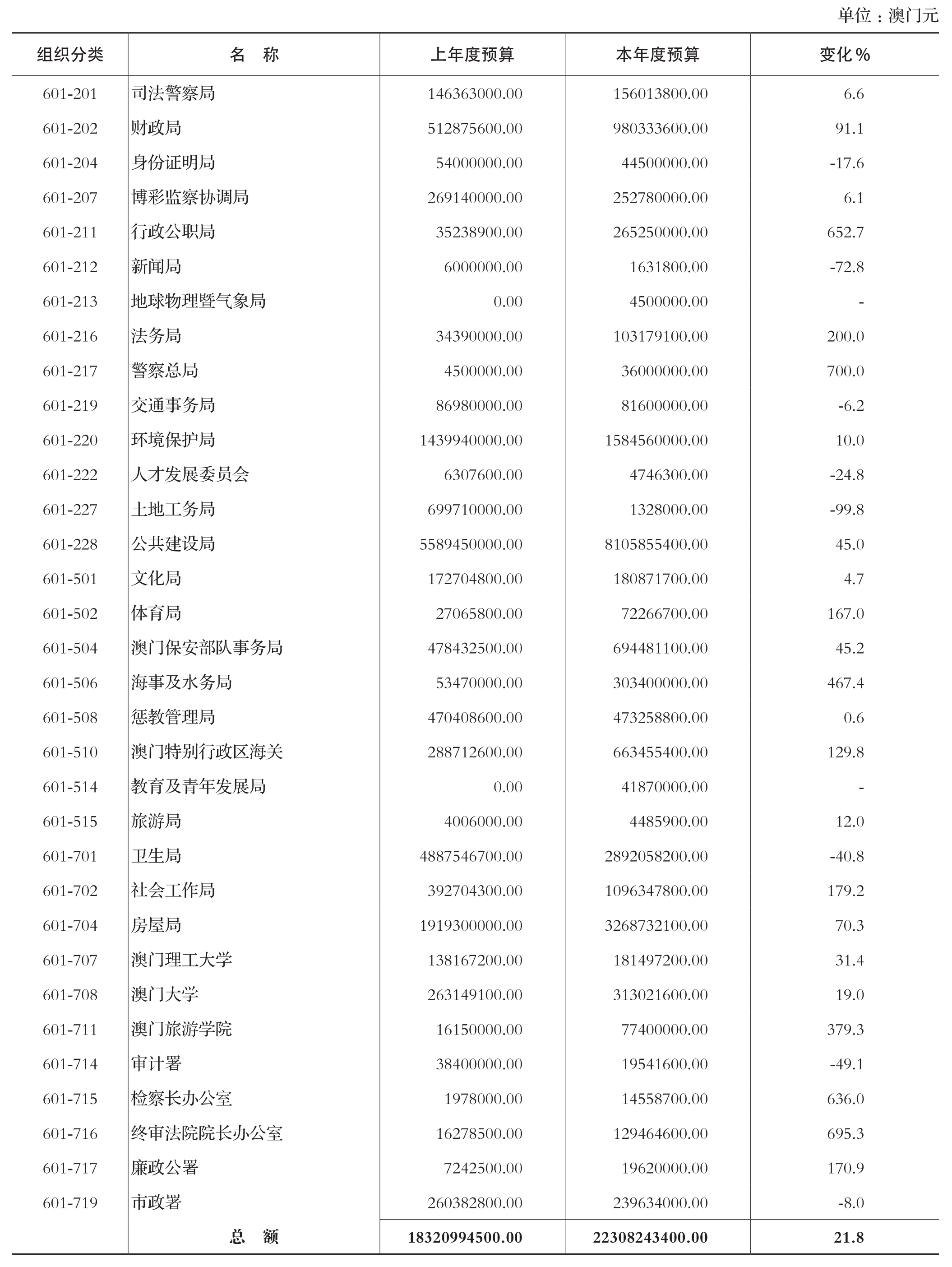 三、二零二三年财政年度特定机构汇总投资预算的开支总额为$406,088,200.00(澳门元肆亿零陆佰零捌万捌仟贰佰元)。