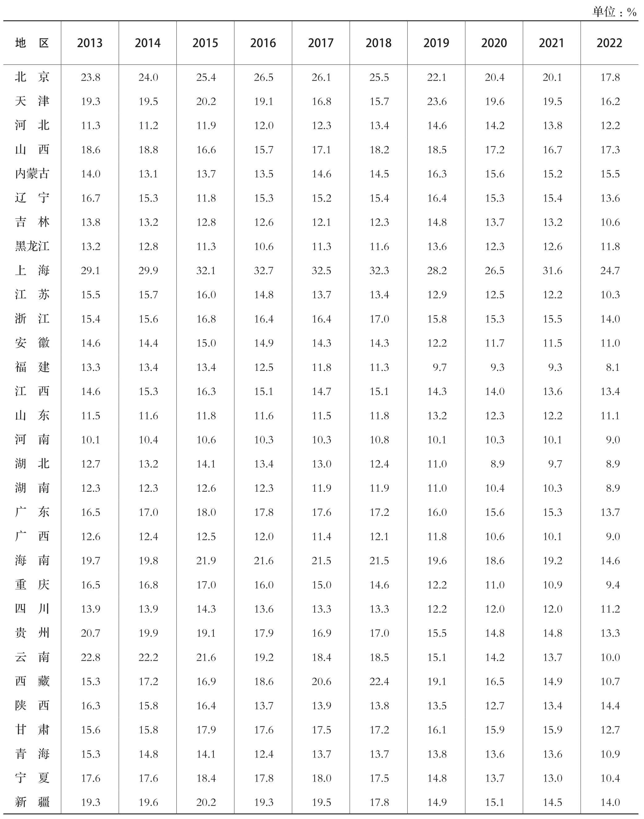 注:表列五个自治区,系指内蒙古自治区、广西壮族自治区、西藏自治区、宁夏回族自治区和新疆维吾尔自治区(由于体制调整,2022年起财