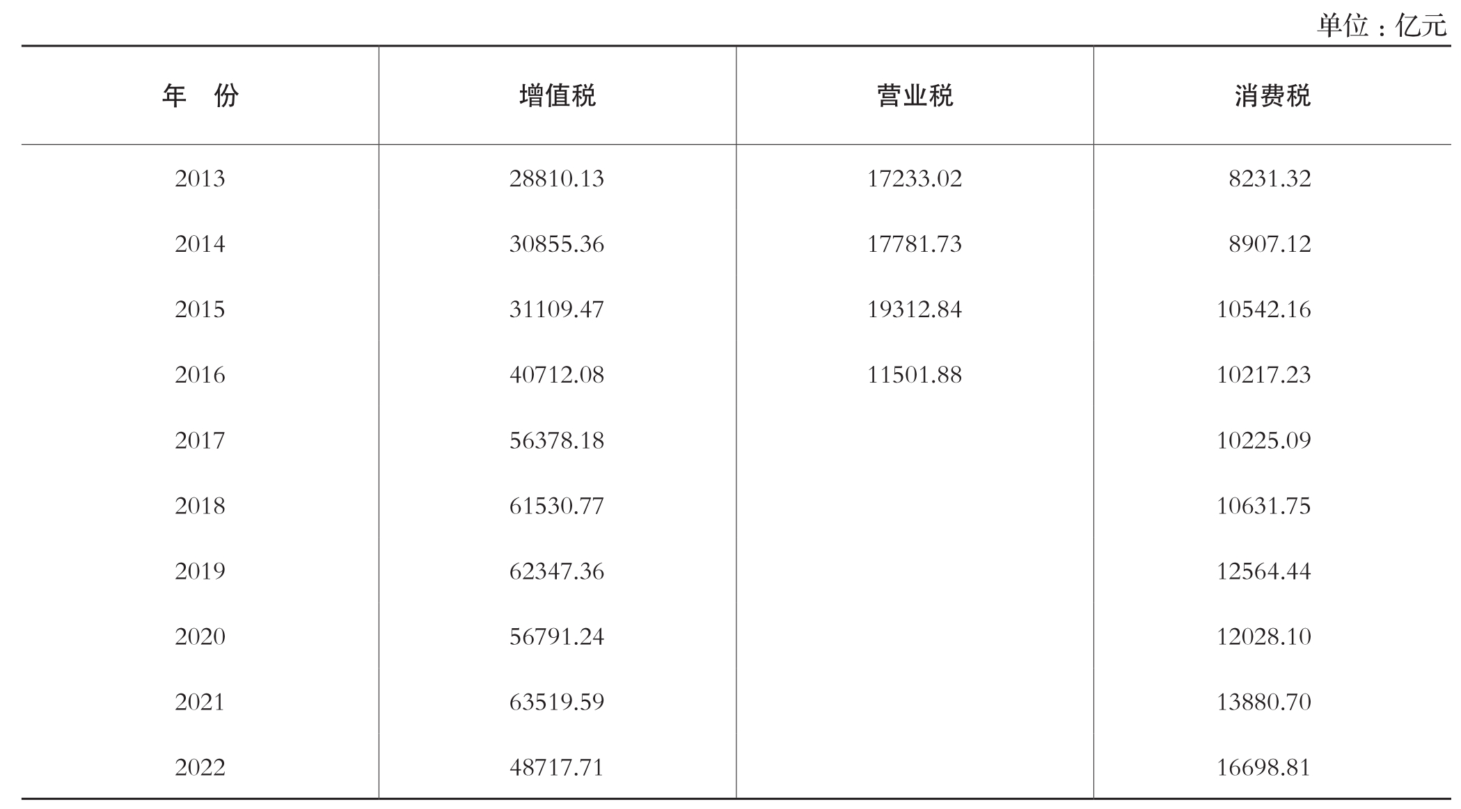 注:1.2016年5月1日起,在全国范围内全面推开营业税改征增值税试点,全部营业税纳税人由缴纳营业税改为缴纳增值税。
