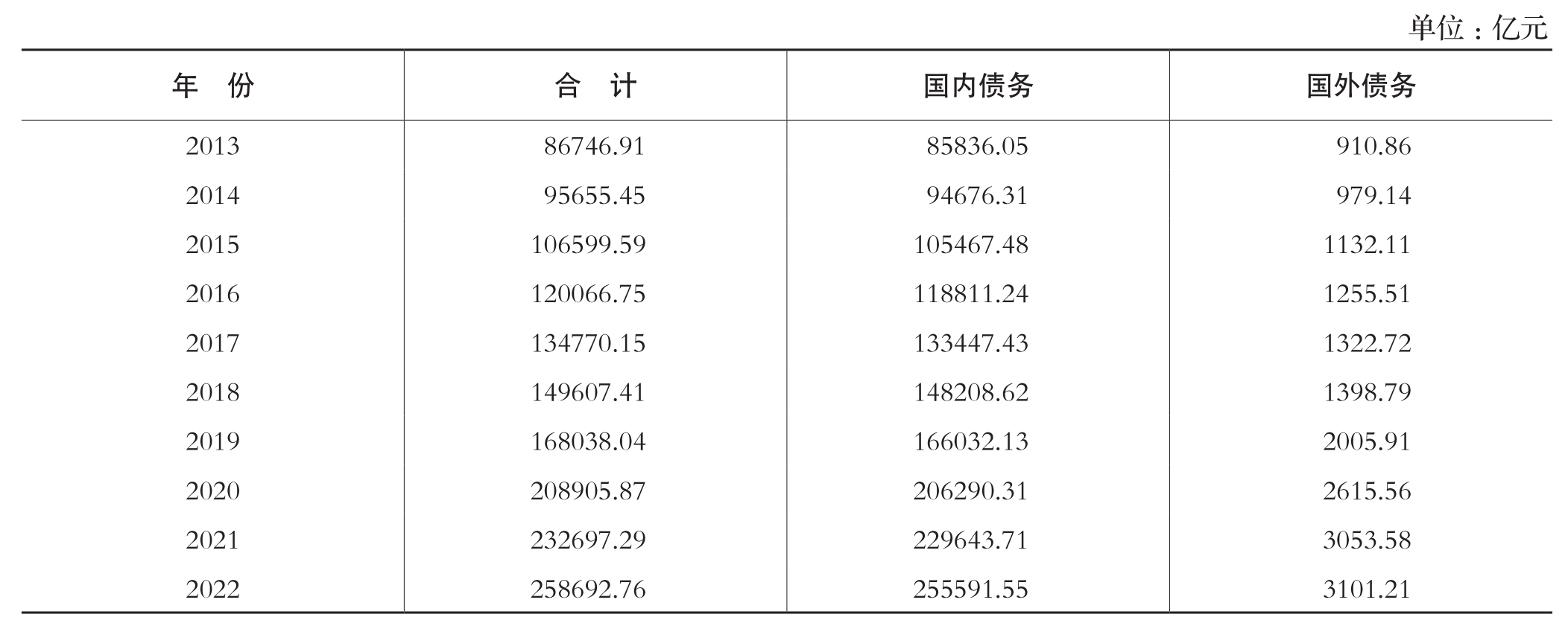 中央财政债务余额情况
