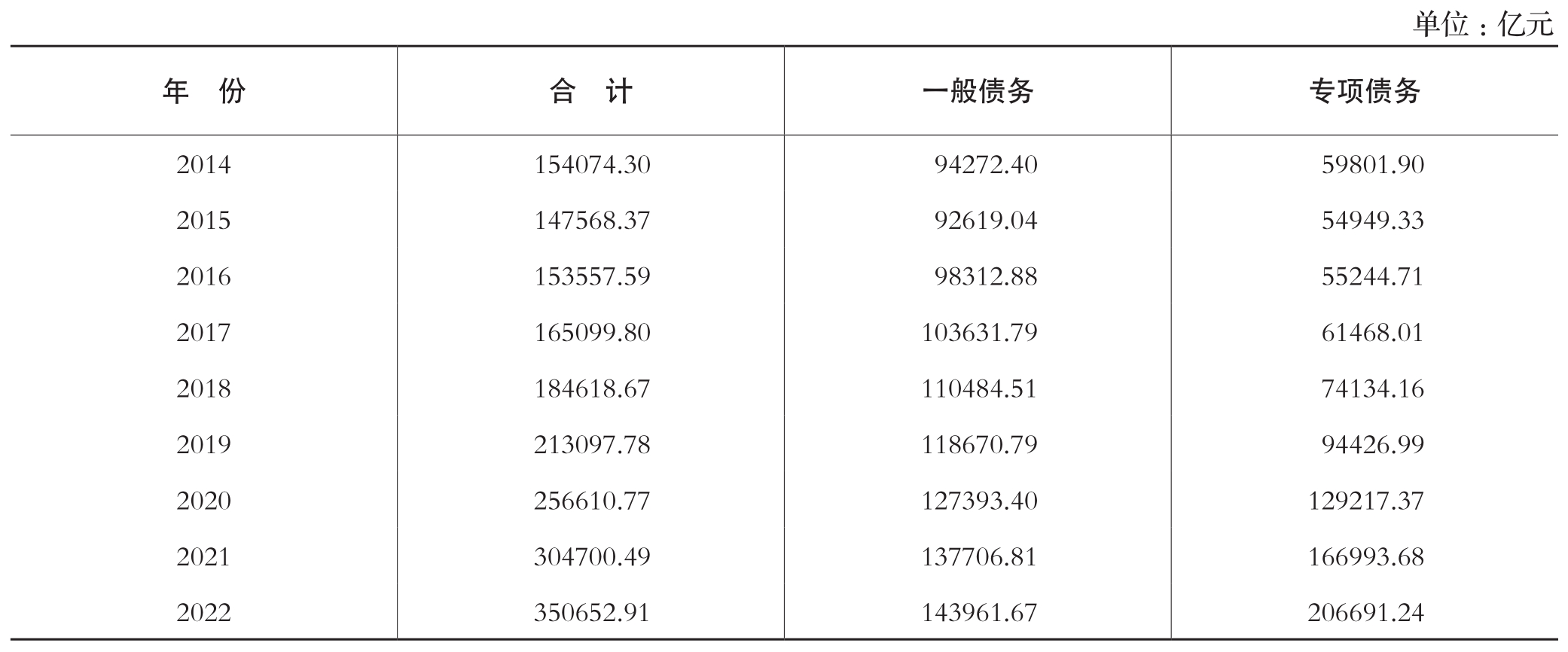 注:1.2014年,国务院印发《关于加强地方政府性债务管理的意见》(国发〔2014〕43号),对地方政府债务实行规模控制和预算管理。