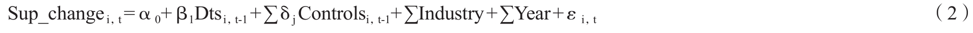 其中,Sup_change代表供应商关系变动,分别采用变动供应商数量占比(Sup_num)与变动供应商采购占比(Sup_purc)指标进行衡量;Dts代表企业数字化转型指标;Controls代表前述控制变量所构成的向量集;ε为随机扰动项。回归时解释变量与控制变量均滞后一期,采用稳健标准误,并控制年度(Year)和行业(Industry)的虚拟变量。