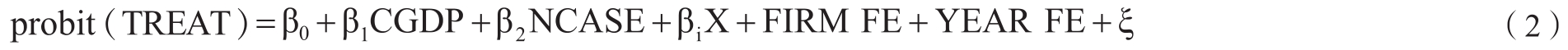 为了获得政策效应的客观估计,基于已有商业信用融资决策的文献(Chen等,2019;Cao等,2022;潘越等,2022;Cheng和Lu,2023;Li等,2023;陈运森等,2023;邓伟等,2024),本文在回归模型中加入影响企业商业信用融资的相关控制变量X,包括企业规模(SIZE)、财务杠杆(LEV)、成长机会(GROWTH)、经营活动现金流(CFO)、盈利能力(ROA)、事务所规模(BIG4)、第一大股东持股比例(LARGE)、独立董事占比(INDR)、两职合一(DUAL)、上市年龄(AGE)以及人均GDP(GDPP)等。此外,回归模型中加入了公司固定效应(FIRM FE)和年份固定效应(YEAR FE)。ξ为随机误差项。