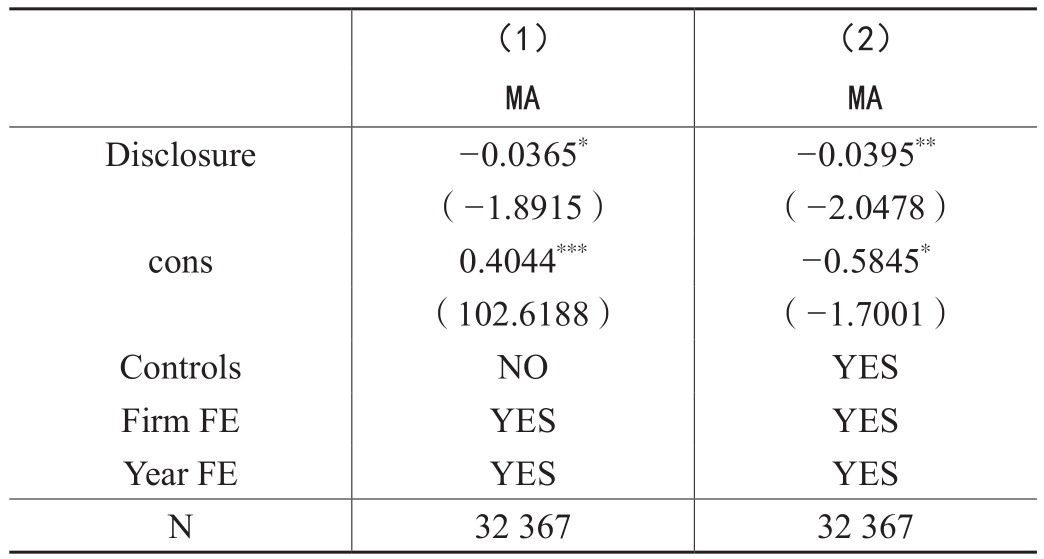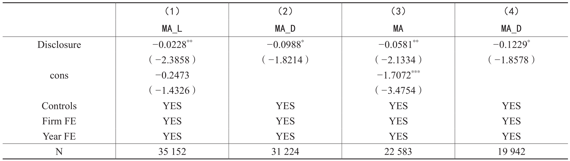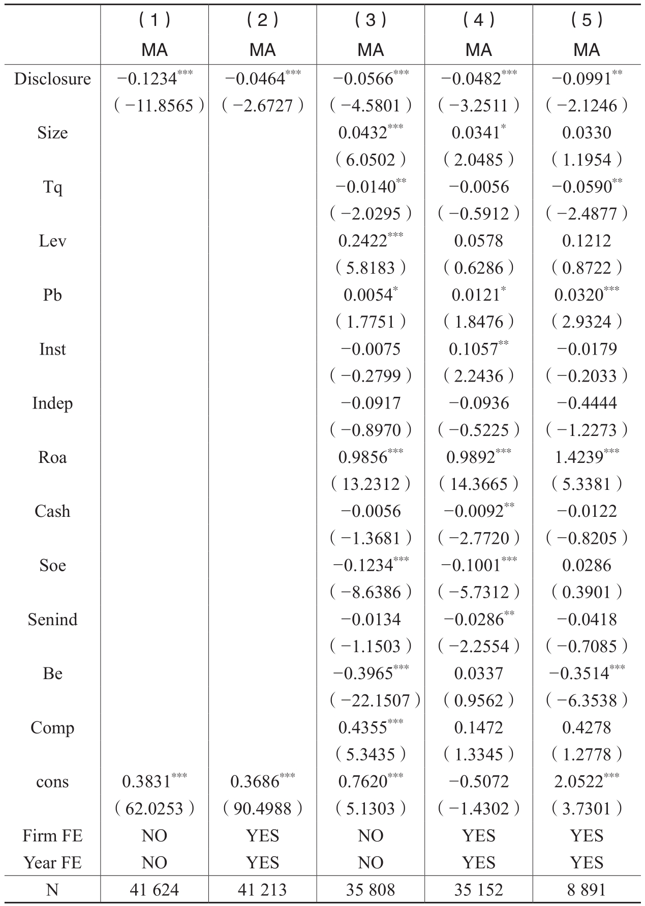 回归结果验证了假设,即行业经营性信息披露显著抑制了企业的并购发起。