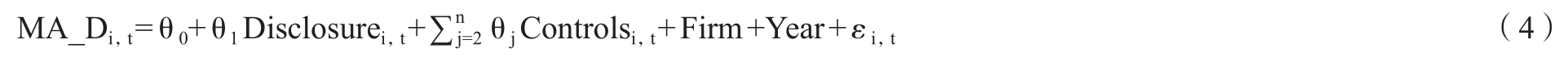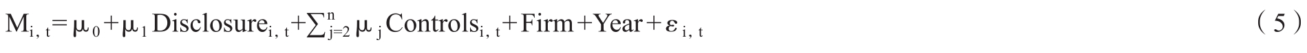 其中,Mi,t为行业经营性信息披露对公司并购决策影响的潜在机制变量,其余变量的具体定义与模型(1)一致。