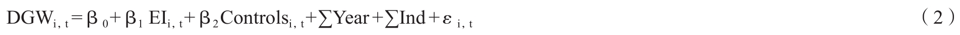 为考察高管股权激励与企业“漂绿”行为之间的关系,构建模型(2)进行检验: