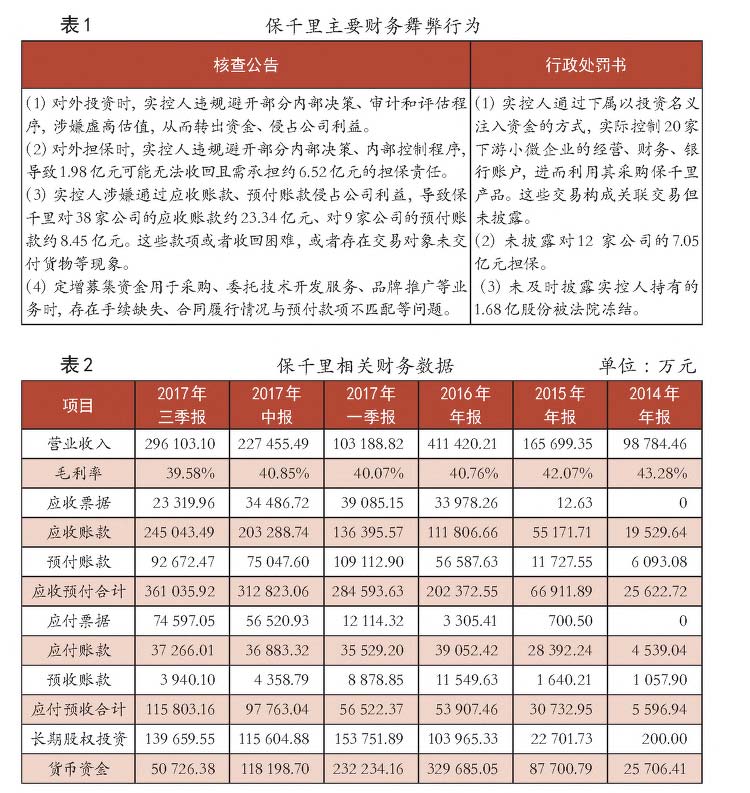 2017年12月,保千里实控人收到证监会对其个人发出的调查通知书,同月,保千里也发布核查公告,指出实控人涉嫌通过对外投资和担保、应收和预付款
